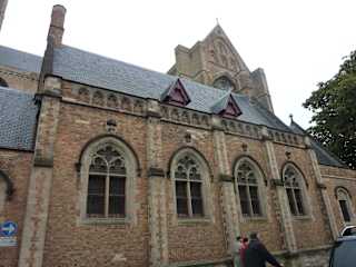 Weil ein Teil der Kirche auf den Fundamenten eines zu Beginn des 12. Jahrhunderts begonnenen romanischen Vorgängerbaus errichtet wurden, gilt die St.-Salvators-Kathedrale nach den Aussagen unseres Reiseführers als älteste Kirche von Brügge. Es ist in jedem Fall ein beeindruckender, wuchtiger Bau mit einer interessanten „Türmchenlandschaft“ mit neuromanischer Form auf der Spitze des Turmes.