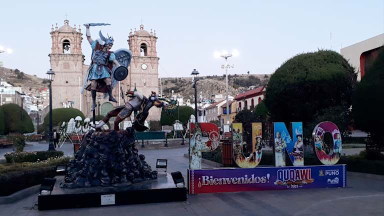 Die Stadt Puno am Titicacasee ist ein guter Ausgangspunkt um die Inseln der Uros oder die Nekropole von Sillustani zu erkunden. Außerdem ist man schnell an einer der Grenzen zu Bolivien. In der Stadt selbst lohnt ein Rundgang zum zentralen Platz mit der Kathedrale, in die Fußgängerzone oder zum Hafen.