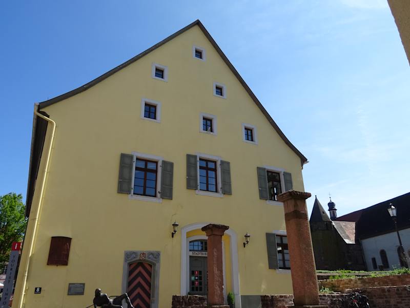 Das Gebäude wurde wohl auf einem ehemaligen römischen Kastell errichtet. Ursprünglich zum bischöflichen Areal gehörend wurde das Gebäude als Schul- und Pfarrhaus und auch als Hotel genutzt. Heute findet man hier die Stadtbibliothek und die Tourist-Information von Ladenburg.