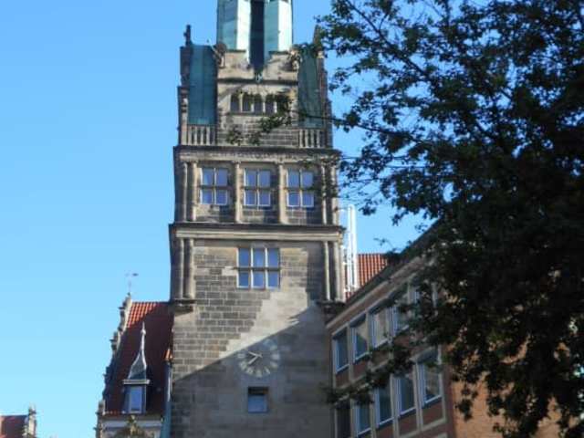 Den Stadthausturm findet man direkt am Prinzipalmarkt, eigentlich läuft man daran schnell vorbei, aber eine Bronzetafel erinnert einen. Er ist der einzig erhaltene Turm des früheren Stadthauses. Besonders Sehenswert ist die Spitze vom Turm die ich von dem Kaufhaus Galerie-Kaufhof besonders gut einsehen konnte und zur vollen Stunde das Glockenspiel, ein Genuss. . Adresse: Prinzipalmarkt 13 48143 Münster