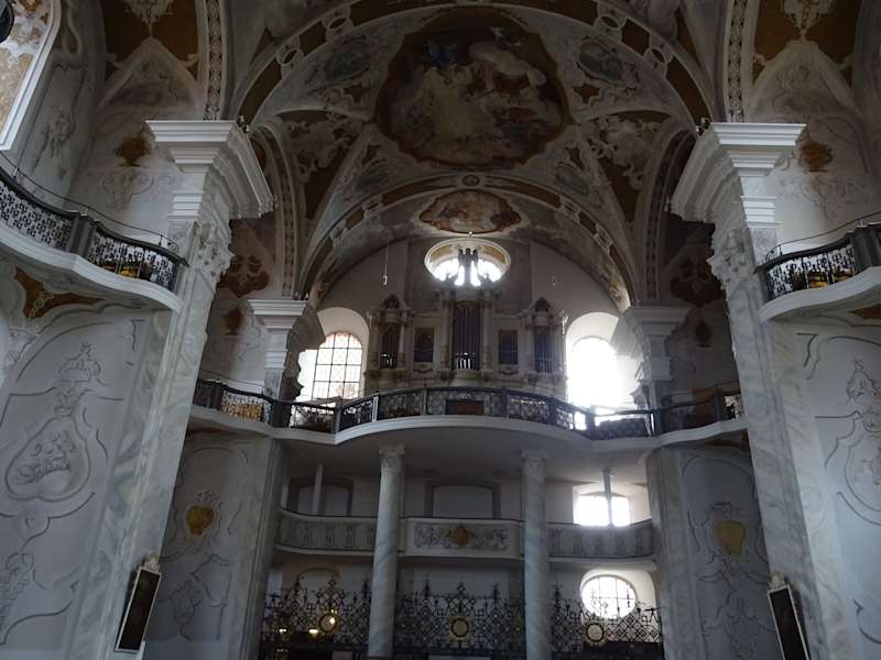 Die Stadtkirche von Ellwangen ist eine barocke, evangelische Wandpfeilerkirche. Erbaut wurde sie 1724. Sie befindet sich am Marktplatz, direkt neben der Basilika. Sehenswert im Inneren sind die Fresken mit Marienthemen und Illusionsmalereien. Am Eingang sticht das kunstvolle schmiedeeiserne Gitter ins Auge. Eine Tür führt in die katholischen Basilika St. Vitus. Adresse: Marktpl. 5, 73479 Ellwangen (Jagst) Geodaten: X46J+RG Ellwangen (Jagst)