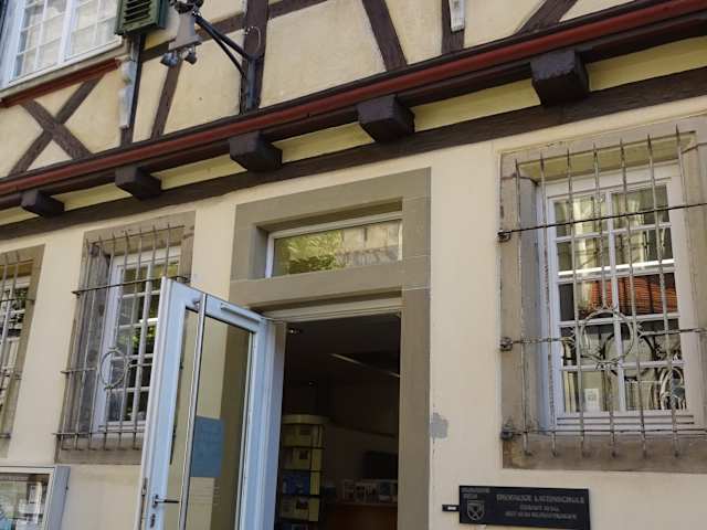 Dieses Museum liegt neben der Stadtkirche , Am Kirchplatz 3. Eine Lateinschule gab es schon seit dem Spätmittelalter, in einer Chronik fand man den Namen des Lateinlehrers von 1357. Die frühere Lateinschule brannte beim großen Brand im Jahr 1634 ab. Das Haus wurde im Jahr 1650 neu erbaut, heute sieht man es so wie es im 17.Jh. da stand. Im Jahr 1796 wurde darin eine Realschulklasse eingefügt, in welcher der geniale Erfinder Gottlieb Daimler und der Flugzeugkonstrukteur Ernst Heinkel unterrichtet wurde. Im Museum werden heute römische Funde und Sachen aus dem Mittelalter ausgestellt.