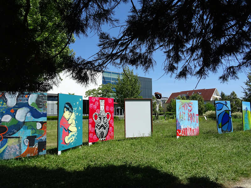 Alter Baumbestand, Kunst und Blick auf Hohentwiel