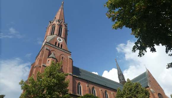 Die St.-Nikolaus-Kirche mit ca. 86 m hohem Turm