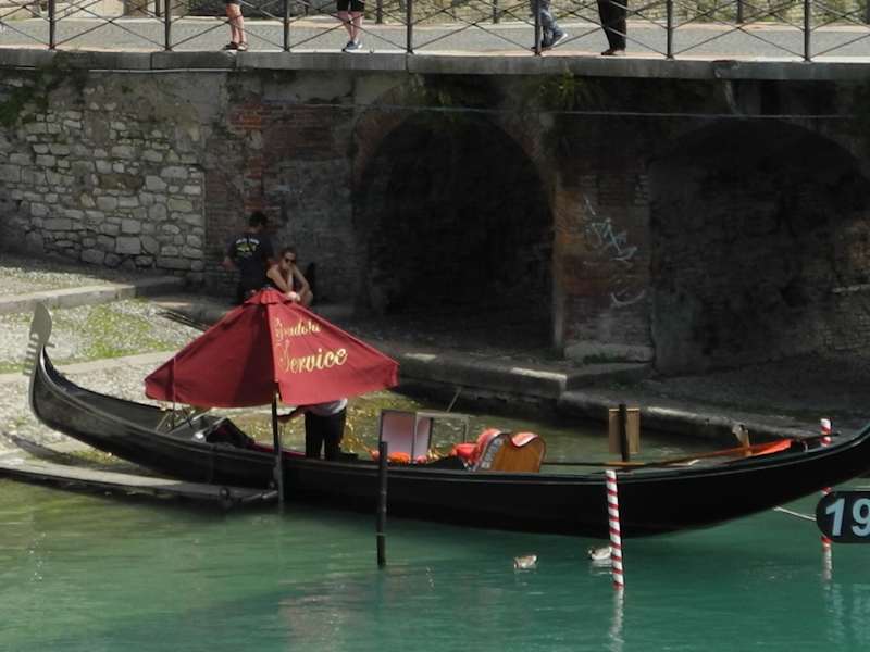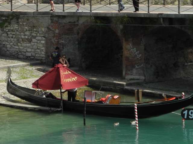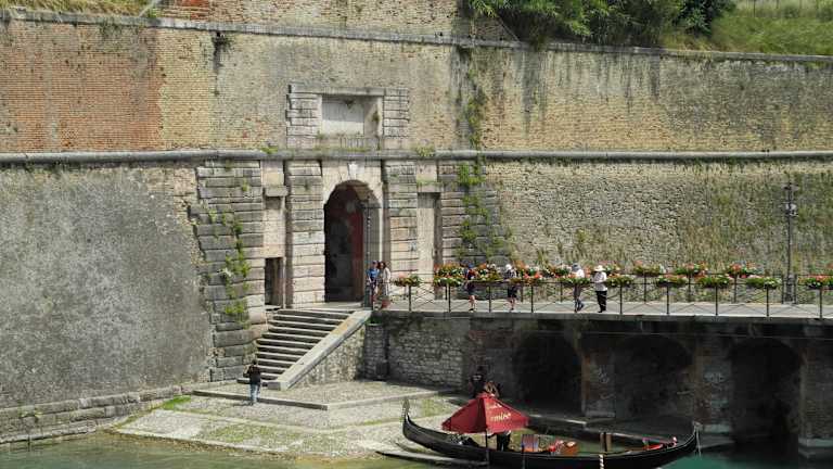 Wer sich in der Altstadt von Peschiera aufhält, wird mit Sicherheit auch zum Durchgang an der Via Roma bzw. Piazetta Cesare Betteloni gelangen. Wer diesen Durchgang passiert, merkt sofort welche Mächtigkeit die Verteidigungswälle haben. Durch diesen Durchgang kommt man zur Porta Brescia. Gleich unten rechts am Treppenabgang ist eine Stelle die auf sie als Gast wartet, hier können sie eine Gondelfahrt unternehmen. Diese Gondel ist mit einiger Sicherheit aus Venedig. Sie wirbt mit dem Hinweis : 19€, ob das für 30 Minuten oder für 60 Minuten ist, war nicht ersichtlich. Jedoch wesentlich günstiger als in Venedig. Wer dieses Angebot aber nicht will, geht über die Brücke weiter und kommt links zu einer alten Kanone, die wahrscheinlich hier einmal zur Verteidigung war. Das Tor Porta Brescia ist eine schöne Seheswürdigkeit.