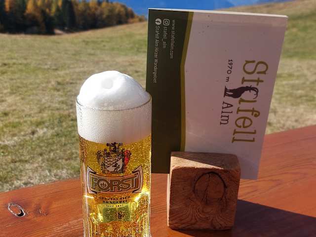 Die Stafell Alm befindet sich im Hirzer Wandergebiet und ist sowohl mit der Hirzer Bergbahn in Saltaus, sowie von der Bergstation des Sesselliftes Tall - Grube zu erreichen. Von der Bergstation des Sesselliftes geht es ca. 3/4 Std. bergauf durch den Wald. Es ist alles gut ausgeschildert. Vor der Alm gibt es viele Tische und Bänke, und jeder Wanderer findet hier ein gutes Plätzchen. Die Speisekarte bot Südtiroler Spezialitäten in süßen und herzhaften Variationen an. Ebenso toller Getränke, wie selbstgemachte Saftschorlen und natürlich auch Bier und Wein und mehr. Ich hatte mich für die Südtiroler Spinatknödel mit Salat entschieden. Da ich die Südtiroler Portionen kenne, bat ich um eine kleiner Portion von 2 Knödeln, was auch vollkommen ausreichte. Das war so lecker!! Die Alm war gut besucht und man sah nur zufriedene Gesichter. Es lohnt sich dort oben einzukehren.