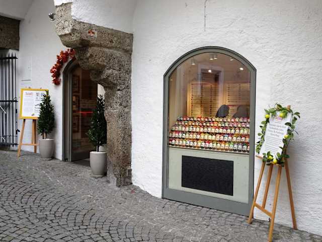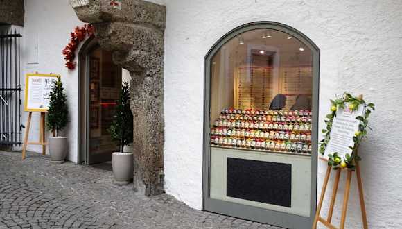 Im Innenhof der Getreidegasse 24 in Salzburgs Altstadt findet sich ein außergewöhnliches Geschäft, welches ohne Frage einen Besuch lohnt: Das „Staindl´s“. In dem kleinen Verkaufsraum stapeln sich in den Regalen mehr als hundert verschiedene Marmeladen und Fruchtaufstriche, Chutneys, Nüsse in Honig, Liköre und Essigzubereitungen in liebevoller Verpackung. Das besondere ist daran, dass sämtliche Produkte von der Besitzerin in Handarbeit hergestellt wurden. Aus dem eigenen Garten, von kleinen Märkten und den Bauern der Umgebung stammen die Rohstoffe, die umgehend in jeweils nur sehr kleinen Mengen verarbeitet werden und entsprechend unvergleichlich gut schmecken. Neben klassischen Marmeladen finden sich viele spannende Kompositionen, etwa „Blutorange mit Ingwer“ oder „Feige-Birne-Portwein“, die man sonst einfach nicht im Handel erwerben kann. Wer es herzhafter mag, wird bei mehr als 40 verschiedenen pikant-scharfen Aufstrichen und Chutneys bestimmt ein Gläschen finden, dessen Inhalt perfekt zum Lieblingskäse passt. Kostproben und eine umfassende Beratung gehören beim „Staindl´s“ zum Konzept und wer auf der Suche nach einem originellen Salzburg-Mitbringsel ist, wird in dem kleinen Spezialitätenladen sicherlich fündig.