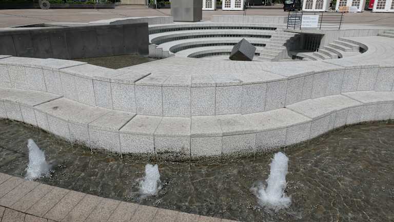 Ein moderner Brunnen - kann man gut einen Abstecher machen wenn man im Bereich "Mediapark" unterwegs ist. Ein extra Abstecher lohnt sich unserer Meinung nach aber nicht unbedingt.