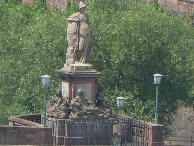 Auf der Alten Brücke von Heidelberg (Karl-Theodor-Brücke) befinden sich zwei übergroße Statuen. Es ist dies zum einen die Statue von Kurfürst Karl Theodor (Carl Theodor). Die ursprüngliche Statue stammt aus dem Jahr 1788. Zum anderen ist auf der Brücke die Statue der römischen Göttin Minerva (entsprechend der griechischen Göttin Pallas Athene) aus dem Jahr 1790. Wenn man bei der Alten Brücke ist, so sollte man sich nach meiner Meinung auch einmal diese beiden Statuen auf der Brücke anschauen. ANMERKUNG: Sowohl die Statue von Kurfürst Carl Theodor, als auch die Statue der Minerva sind Kopien, die Original-Statuen befindet sich inzwischen im Kurpfälzischen Museum Heidelberg.