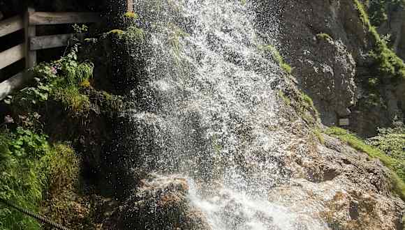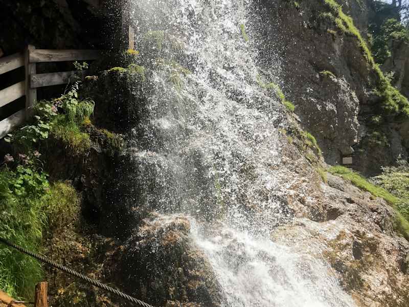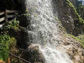 Ab dem Parkplatz Laubau/ Holzknechtmuseum führt ein alter Schmugglerweg am Fischbach entlang zum Staubfall ins österreichische Heutal. Der Weg ist zuerst geteert, dann geschottert und immer im Wald . Im letzten Drittel geht es ca. 170 Höhenmeter auf einem schmalen Steig steil nach oben. Nach einer Kurve erscheint dann das Naturdenkmal: der imposante Staubfall. Das Wasser stürzt etwa 200 Meter in die Tiefe. Der Grenzübertritt nach Österreich findet unter dem Wasserfall statt. Der Weg führt unter einer Überdachung direkt unter dem Wasserfall durch. Ein beeindruckendes Naturschauspiel, zu dem sich der 3 stündige Aufstieg wirklich lohnt.