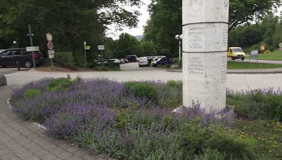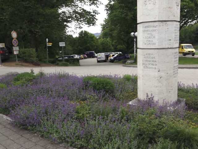 Als Erinnerung an das Benediktinerkloster Lorch, welches Familiengrablege der Staufer war, wurde diese Stele aufgestellt. Königin Irene Maria von Byzanz, Ehefrau des Stauferkönigs Philipp von Schwaben ist hier bestattet. Zu ihrem 700. Todestag, gestorben 1208, wurde sie eingeweiht.