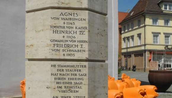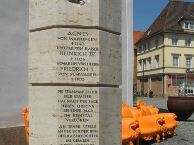 Schwäbisch-Gmünd darf sich die älteteste Stauferstadt nennen, auch hier gibt es eine Stauferstele. Keine Stadt die mit den Staufern zusammen hängt, hat ein älteres Dokument über diese Zeit. Die Staufer, das Adelsgeschlecht regierte vom 11. bis zum 12. Jahrhndert. Damals war der Name nicht unbedingt zeitgemäß, er leitet sich heute ab von der Burg Hohenstaufen, eine Burgruine im Kreis Göppingen. Mit den Staufern verbinden sich so berühmte Namen wie Friedrich I. Barbarossa, Heinrich und Friedrich II. die auf Sizilien regierten. Heute zählt man 38 Stelen in Städten die mit den Herrschern der damaligen Zeit zusammen hingen.