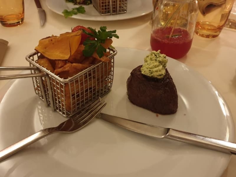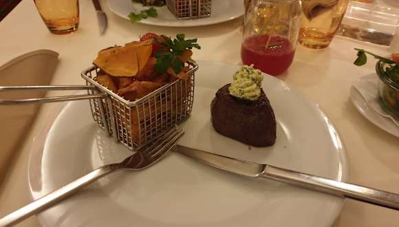 Keine Massenabfertigung sondern echt gute Küche und absolut leckeres Essen mit wirklich schönem Ambiente. Ich selber bin kein Steakesser, aber es gab ja auch Garnelen, Lachs und tolle Salate. Für eine touristische Stadt passt auch das Preisleistungsverhältnis. Mein Mann meinte, das beste Steak das er je gegessen hat. Dann muss man den Ausblick ansprechen, wann isst man schon mit dem Pianospieler hinter sich und dem Blick auf die Frauenkirche von Dresden vor sich....perfekt!