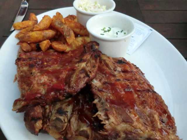 Hier hatten wir für den Tag unserer Anreise extra vorher reserviert, was sich auch als sehr nützlich erweisen sollte. Denn zum Abendessen war es hier richtig voll und es mussten doch einige der Touristen wieder gehen. Service war freundlich und flott, keine langen Wartezeiten. Wir haben uns für Rippchen, 1x normal + 1x scharf entschieden, jeweils große Portion. Die sind dann auch wirklich groß, deshalb hier keine Vorspeisen wählen! Die Rippchen waren beide butterzart und sehr schön gewürzt, klasse. Die scharfen sind wirklich scharf, sollte man wissen.