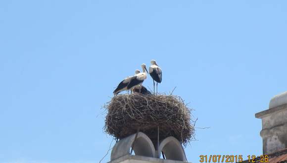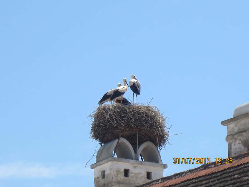 Erstes Juliwochenende, die Sonne war am Untergehen und ein kühles Glas Wein stand in einer Bar vor mir. Plötzlich kamen die Störche aus der Umgebung, besetzen die Hausdächer bzw. kehrten in ihre Nester zurück. Es war als ob sie eine Versammlung abgehalten haben um sich die Neuigkeiten des Tages mit klapperndem Schnabel zu erzählen. Im Laufe des Abends gab es immer weniger Teilnehmer, weil eingeschlafen im Nest oder zum eigenen Nistplatz zurückgeflogen. Schöne Stimmung