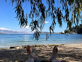 Man sollte schon Schuhe anziehen um zum Strand zu gehen - denn der Aspahlt und der braune Sand kann schon recht heiss werden - (die Naturstrände weisen oft lavaartiges Gestein auf, was sehr scharfkantig sein kann) bis das kühle Nass wieder kühlt im Meer. Sehr oft sind Liegen und Stühle wie auch Sonnenschirme am Strand nicht kostenlos- man bezahlt Miete dafür. Empfehlenswert ist ein Auto zu mieten und die Küste abzufahren- sehr schön ist die Westküste vom Norden bis Süden- nicht vergessen Schäden an den Fahrzeugen sich vorher bestätigen zu lassen, oder Zeugen dabei haben - Sonnenschirme und zu Trinken nicht vergessen mitzunehmen (kaufen im Supermarkt ist günstiger denn mieten!) Fahrräder können auch gemietet werden, allerdings sollte man zuerst mal kurz Probefahren- man wird das Rad dann leichter wechseln können. All inklusiv ist auf Korfu nicht gleich alles inklusiv. Man muss wirklich aufpassen, was wirklich inklusive ist. Für nicht im AI enthaltene Getränke oder Essen zahlt man mitteleuropäische Preise und dann kann es schon mal teuer werden. Also informiert Euch besser vorher, dann gibt es keine Enttäuschung. Geniessen könnt Ihr fast täglich die traumhaften Sonnenuntergänge. Für Hobbyfischer hat es praktisch keine Fische vom Strand her. Leider gibt es sehr viele Strandabschnitte die privat oder hoteleigen sind.