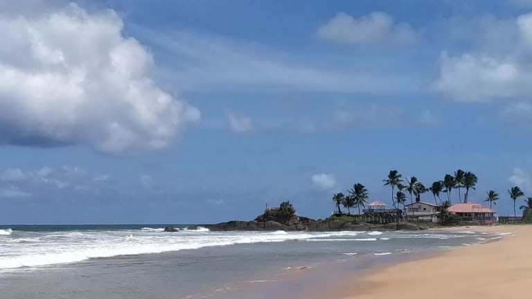 Der ruhige und ca. 2- 3km lange Sandstrand von Ahungalla - einer kleinen Ortschaft nahe der südsrilankischen Stadt Bentota, liegt grob gesehen zwischen Kosgoda im Norden und Balapitiya im Süden. An ihm liegen einige, wenige Hotels wie z.b. das kleine White Villa Resort, das größere Heritance Ahungalla mit ca 150 Zimmern und einige Hundert Meter daneben das leider 500 Zimmer umfassende Riu Hotel. Richtung Balapitiya befinden sch dann nur noch kelinere Guest Houses bzw. Hotels. Trotz der Tatsache, daß das Heritance und das Riu zusammen 650 Zimmer (ca. max. 1300 Menschen in der Hochsaison beherbergen), sieht man nur wenige am Strand laufen bzw auch nur relativ wenige im Meer baden. Daher war dieser Strand bei meinen morgendlichen Beach Walks weitestgehend menschenleer! Die wenigen Strandverkäufer suchen zwar immer nach neuen Kunden, sind aber wenig aufdringlich und lassen einem auch die Ruhe! Der Strand ist goldgelb, sehr sauber (!) - es gibt von den Hotels aus regelmäßige Reinigungsaktionen! Die Beschaffenheit des Sandes ist sehr gut: man sinkt nicht ein und kann daher sehr gut am Strand spazieren gehen! Ebenso gibt es einige kelinere Strandrestaurants (White Villa Resort, Jungle Beach, Hello Restaurant) mit guter, "safer" Küche". Eine überzeugte Empfehlung!