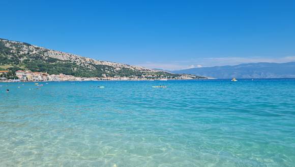 Baška ist ein populäres Touristenzentrum im südlichen Teil der Insel Krk. Damals gab es hier ein kleines und ruhiges Fischerdorf, welches zum Urlaubsort wurde und viele Touristen anlockte. Zu den landschaftlichen Besonderheiten der Insel gehört der malerische Kieselsteinstrand, der 2 Kilometer lang ist. 1999 wurde er mit der Blauen Flagge ausgezeichnet, welche von hoher Qualität zeugt. Der Strand bietet gute Bedingungen für einen entspannten oder aktiven Urlaub. Entlang des Strandes verläuft die unter Spaziergängern beliebte Promenade Palada. Dort gibt es viele Restaurants mit Terrassen, auf denen man während der Mahlzeiten auch die wunderschöne Aussicht genießen kann.