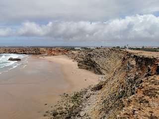 Der kleine, schöne Sandstrand von Burgau, die Praia do Burgau, ist ca. 15 km vom Zentrum von Lagos entfernt. Im März war es hier noch recht friedlich, es waren kaum Menschen am Strand. Links und rechts wird der Strand von der Steilküste / Felsküste begrenzt. Es ist zwar ein schöner Strand, aber nur des Strandes wegen würde ich keinen längeren Weg auf mich nehmen. Der Strand ist oft das Ziel einer schönen Küstenwanderung (was auch der Grund war, warum wir nach Burga und zur Praia do Burgau gekommen sind).