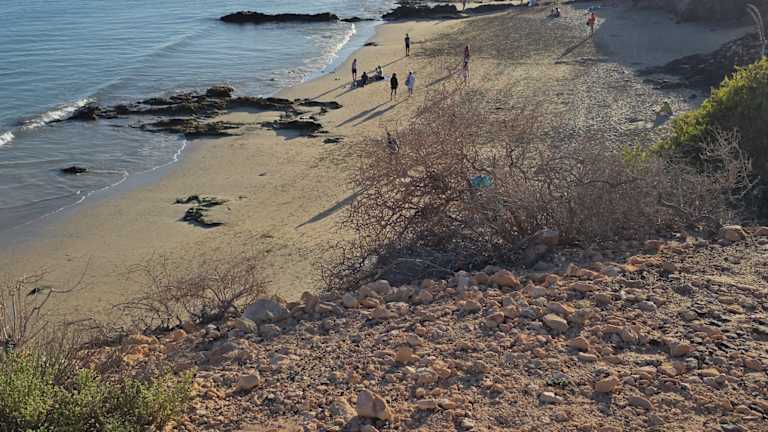 Schöner Sandstrand, aber auf Gepäck achten!