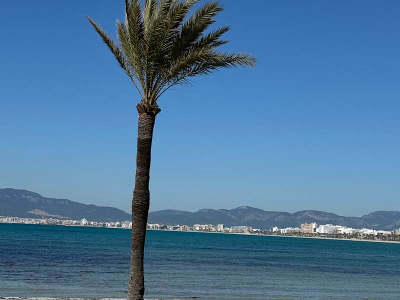 Der Strand von S'Arenal (Playa S' Arenal) zieht sich vom Hafen / Yachthafen von S'Arenal in nordwestlicher Richtung entlang Richtung Palma de Mallorca. Der Strand von S'Arenal geht nahtlos in den Strand von Palma (Platja de Palma) über. Es handelt sich um einen schönen, relativ breiten Sandstrand, der bei Touristen unterschiedlicher Couleur beliebt ist. Als wir jetzt im Februar 2024 hier waren, waren dem Wetter und den Temperaturen entsprechend nur einige einzelne, hartgesottene in Badekleidung am Strand und sogar einige wenige waren im Wasser. Aber die meisten sind (so wie wir) gut warm angezogen am Strand entlang gelaufen, was sehr schön war, da sich der Andrang in Grenzen hielt. Im Sommer, wenn es heiß ist und alles überlaufen ist, möchte ich jedoch nicht hier am Strand sein.