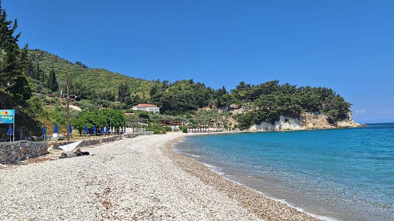 Ich habe Kokkari und den Strand von Kokkari in der Hochsaison, am 8.8. besucht und war erstaunt, wie herrlich ruhig, wie wenig „bevölkert“ es dort war. Liegt es daran, dass der Strand – wie auch die Strände um Pythagorion - eher steinig als kieselig ist? Also nicht unbedingt anziehend für viele Touristen ? Mir hat der Strand auf jeden Fall wirklich gut gefallen, ist aber – natürlich - Geschmackssache. Und mir hat gefallen, dass der Strand nicht in seiner gesamten Länge mit Sonnenschirmen und Liegen „zugepflastert“ war. Es gab Sonnenschirme und Liegen, aber nur in bestimmten Abschnitten. Tavernen, Bars gibt es in der gesamten Bucht in ausreichender Zahl. Für mich insgesamt – sehr schön. :-)