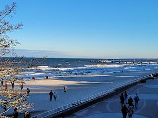 Vom Hotel Provita kann man sehr schön und entspannt die Strandpromenade entlang spazieren... bis zur Mole und zum Leuchtturm. auf dem Weg dorthin kann man in einem Cafe im 12.Stock Rast machen (im Hotel Baltic) und hat dabei einen super Ausblick über Meer und Küste.