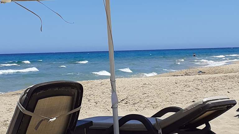 Der Strand ist sehr schön waren nicht direkt bei am Hotel ein Stückchen weg aber sehr schön kein Dreck keine Steine nur Sand.