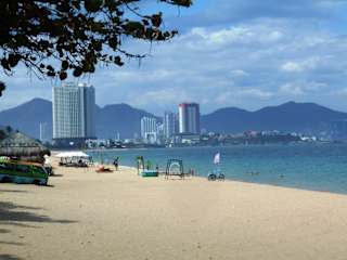 Den Stadtstrand von Nha Trang sollte man nicht unbedingt als Urlaubsziel wählen. Wenn man nur kurz in dieser Stadt ist, kann man am Strand etwas Freizeit verbringen, aber mehr ist eigentlich nicht zu empfehlen. Wir waren mit einem Kreuzfahrtschiff für einen Tag hier, da war ein Spaziergang am Strand ganz nett.