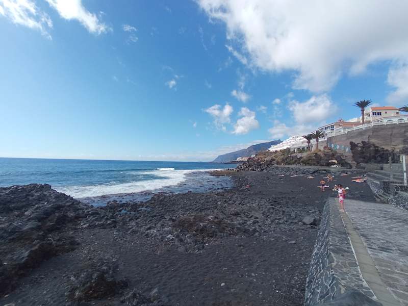 Der Strand von Playa San Juan ist an der Süd-West Küste von Teneriffa gelegen. Durch die Fischereiwirtschaft wurde vor vielen Jahren eine Mole gebaut, die den Strand vor starken Wellen schützt. Während es passieren kann, dass man zum Beispiel in Playa de la Arena eine Woche nur die rote Flagge (Badeverbot) wegen zu starker Wellen und Strömungen sieht, haben wir dies in Playa San Juan noch nie erlebt. Seit ca. 2 Jahren hat der Strand auch die blaue Flagge erhalten. Der Strand wird von Rettungskräften überwacht. Liegen mit Schirmen können gemietet werden (2015 7,50 €/d). Seit mehreren Jahren ist auch die Strandbar bewirtschaftet, so dass auch die Versorgung sichergestellt ist. Öffentliche Toiletten, Häuschen zum Umziehen, sowie Duschen sind vorhanden und nutzbar. Der Strand ist gut für Kinder geeignet. Durch den schwarzen Sand und die vorhandenen Steine sind Badeschuhe zu empfehlen.