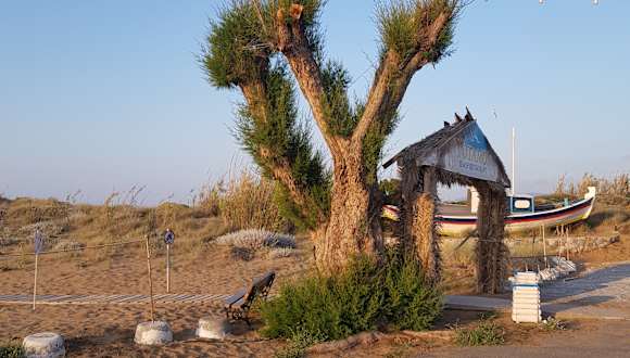 Der traumhafte Natursandstrand mit kleinen Dünen war von unserem Hotel Meropi aus nur 3 Km entfernt. Es geht flach in das klare Meer z.T. mit Felsen. Er ist idael Für Familien mit Kinder geeignet zum spielen und schwimmen oder einfach zum Ausspannen. Es werden Liegen und Schirme vermietet. Kostenloses Parken am Strand. Deshalb eine klare Weiterempfehlung von uns!