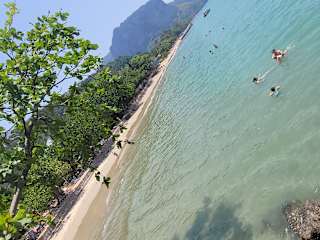 Keine 10 Minuten zu Fuß ist man vom Railay Pier an diesem Strand, der sehr schön ist und v.a. viel zum Sonnenuntergang anlockt. dann ist es hier sehr schön in einem der Restaurants bei einem Drink die Aussicht zu genießen. Vor allem am Vormittag ist es hier oft ziemlich leer und angenehm still. Zudem ist der Vormittag die beste Zeit für Fotografien