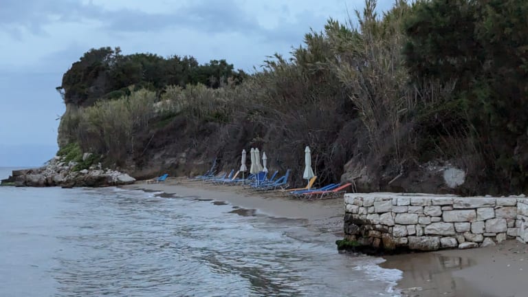 Wenn man von der kleinen Brücke am westlichen Ortsausgang aus westlich (also links/ortsauswärts) am Strand weitergeht findet man schöne kleine Liegeplätze im Sand für 2-4 Personen mit genügend Abstand zum Strandnachbarn, weil dazwischen immer wieder alles bewachsen ist. In der Vorsaison eine angenehm ruhige Ecke. So viele Fußgänger sind da noch nicht direkt vor einem am Strand langgelaufen. (Fotos hab ich auch eingestellt) An der Straße nach der Ortsausgangs-Brücke findet man den Reit-Tour-Anbieter Costas Horse Riding. Unter der Brücke sind viele Wasserschildkröten zu beobachten.