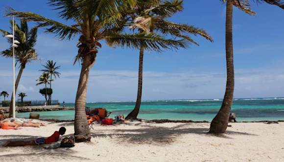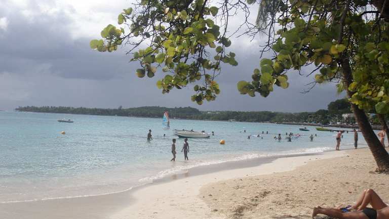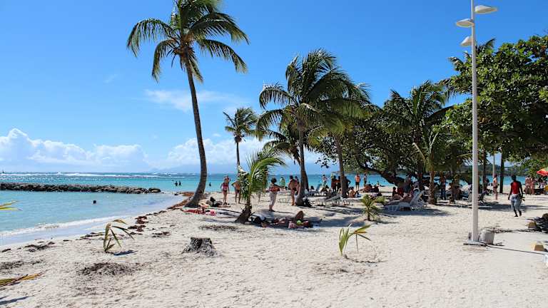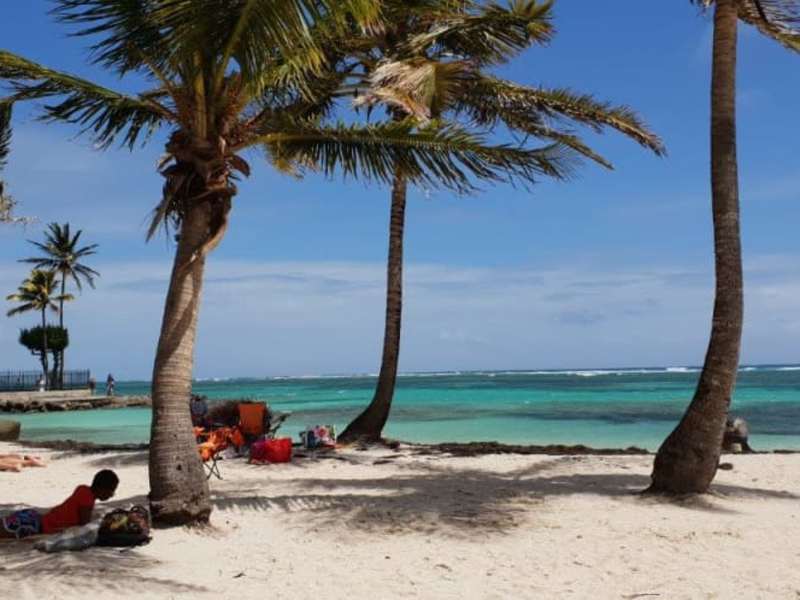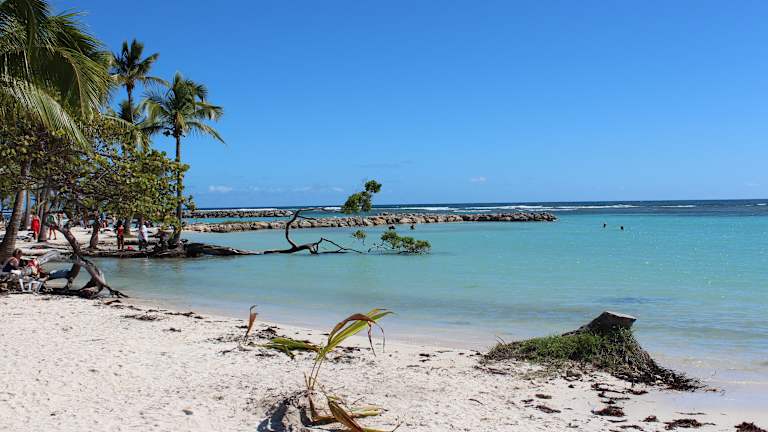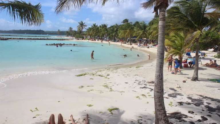 Von Point a Pitre wollten wir mit dem Taxi an den Sainte Anne Strand. Da wir die im Hafenbereich von den Taxlern verlangten 100 € hin und retour nicht zahlen wollten marschierten wir zuerst zum Gewürz- und Gemüsemarkt in der Innenstadt (etwa 10 Minuten) und hielten dort einen Taxifahrer auf, der uns für 30 € (Fahrzeit etwa 25 Minuten) zum Strand brachte. Da er allerdings dann nicht wie vereinbart um 14.00 vor Ort war um uns abzuholen, teilten wir uns zum Heimfahren ein Taxi mit einem Pärchen und zahlten nur 20 € zum Hafen retour. Der Strand war wunderschön und das Meer karibisch blau. Durch den Steinwall zum offenen Meer hin ist das Wasser seicht und ohne Wellen. Essensmöglichkeiten sind am Strand genügend vorhanden und Taxis zum zurückfahren jederzeit vorhanden.
