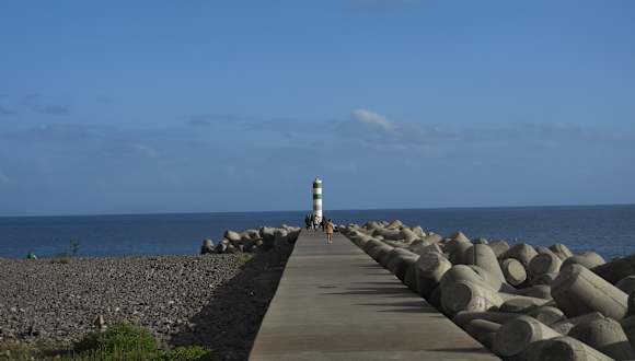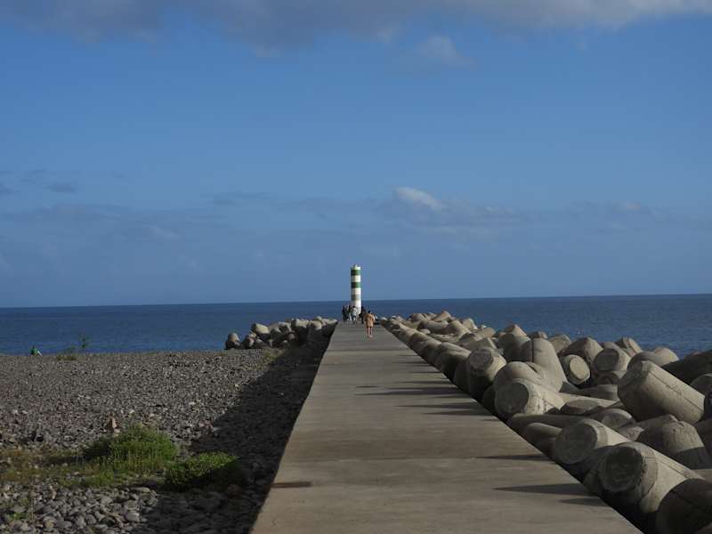 Der Strand besteht aus glatten, aber sehr großen Steinen (von der Größe einer Faust bis zu einem Fußball), die allein schon das Gehen darauf schwierig machen. Aber selbst im März sahen wir einige Einheimische, die diesen öffentlichen Strandabschnitt nutzen und bei einer Wassertemperatur von 18° im Atlantik schwimmen gingen.