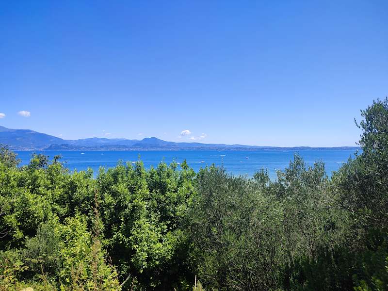 Wunderschöne Landschaft, herrliche Aussicht und ein schönes Sonnenbad im Gardasee auf den flachen Steinen.