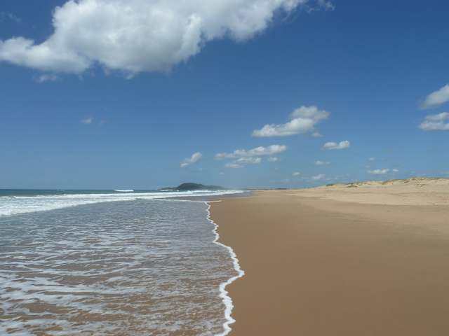 breiter kilometerlanger Strand leider wegen starker Brandung zu unserer Reisezeit Mai/Juni zum Baden nicht geeignet ansonsten sehr schön mi Toiletten und Duschen und schönen Dünen.