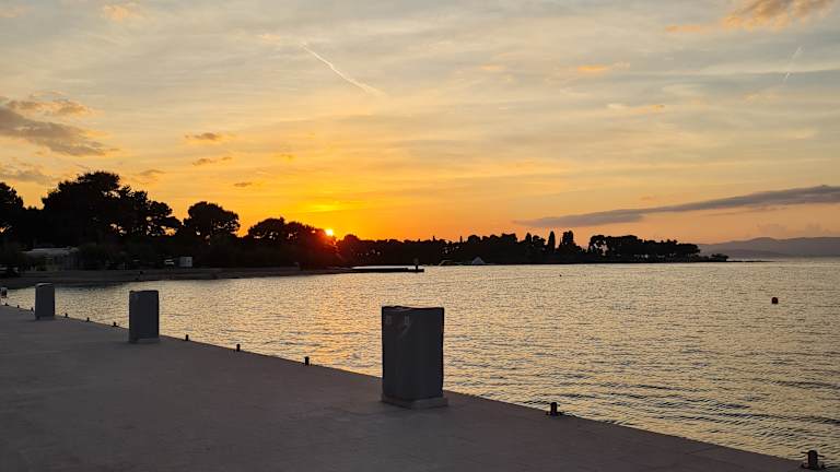 Felsstrand mit tollen Panorama! Die Aussicht zum Festland über der Meeresenge mit den Bergen im Hintergrund und der Altstadt von Split lädt zum verweilen ein. Nicht nur die schöne Aussicht sondern auch das Glasklare Wasser und die grüne Natur sind sehr sehenswert und von großen Erholungswert!