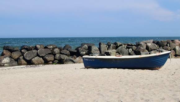 Herrlicher Sandstrand der einige Kilometer lang sich in einer sanften Bucht hinzieht. An einigen Stellen gibt es Restaurants, Strandkörbe,etc. ist aber weit davon entfernt überlaufen zu sein. Im Gegenteil: hier kan man in Ruhe die Natur geniessen. Perfekt auch für Urlaub mit Hund. Am Campingplatz schaut man direkt auf's Wasser, was will man Mee(h)r?