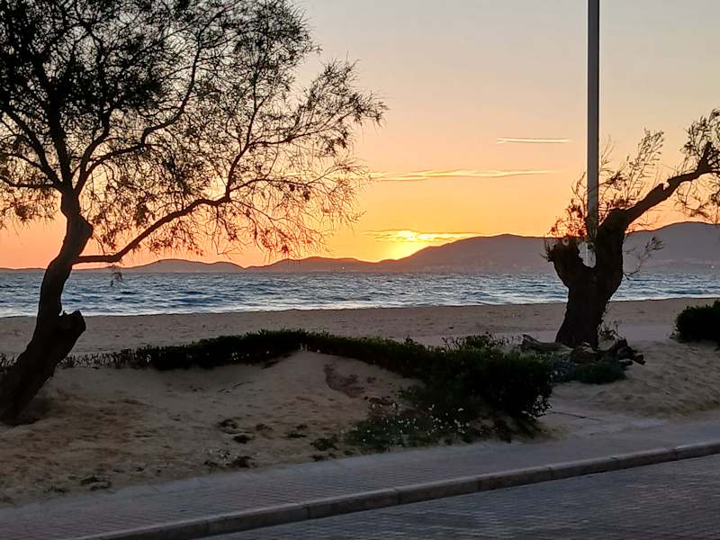 Die schöne, flache, lange und relativ breite Strandpromenade der Playa de Palma lädt zu kürzeren oder längeren Spaziergängen ein – oder man setzt sich irgendwo hin und blickt entspannt zum Meer (z.B. beim Sonnenuntergang). Bei unserem Urlaub an der Playa de Palma waren wir jeden Tag mindestens einmal an der Strandpromenade und obwohl das Wetter Ende Februar meistens nicht besonders gut war, genossen wir unsere Aufenthalte an der Promenade.