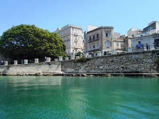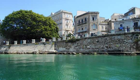 Auf der östlichen Seite von Syrakus- Ortigia zieht sich die romantische Straße am Meer entlang. Nun hat Ortigia keine Bademöglichkeit im Meer, hier aber gibt es einen kleinen Strandabschnitt an welchem sich sogar im September Badegäste einfinden. Ganz besonders ist auch der herrliche Blick von der Straße Lungomare auf das Meer, nicht so gut ist die baufällige Kirche mit der schönen Barockfassade.