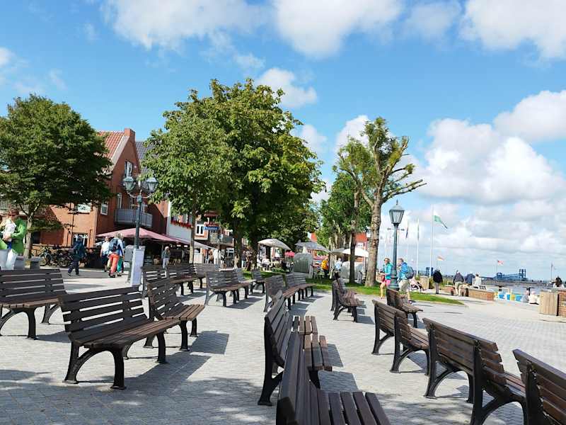 Die Strandpromenade gefällt mir als Föhr - Fan immer noch besonders gut. Dieses Jahr wurde der hintere Teil komplett neu angelegt und eine große Terrasse geschaffen, wo man dem Meer, den ankommenden Fähren, dem bunten Treiben am Strand, den Menschen und Urlaubern in aller Ruhe zuschauen kan. Die diversen Cafés entlang der gesamten, etwa 1, 5 km langen Promenade, laden zum Umtrunk und Essen ein, die Geschäfte warten mit allem was man braucht (oder auch nicht braucht) und ein Kino gibt es dort auch. Diverse Sitzgelegenheiten stehen dicht an dicht. Hier findet man kompakt alles, was das Urlauberherz begehrt. Die Hauptbrücke ist ein beliebter Treff der Jugendlichen am Abend, aber auch für alle anderen ist sie und der Strand dort immer für einen Spaziergang zu haben. Dort ist bis 23 Uhr immer etwas los. Dann schließen, je nach Witterung, dort die geschäfte. Cafés lassen solange geöffnet, wie Besucher dort sind. Eine Sperrstunde gibt es dort nicht.