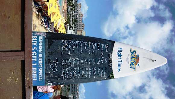 Die Sunset Bar befindet sich direkt am Anfang des Maho Beaches. Ein uriges Strandlokal, welches einem Piraten Haus ähnelt. Vom Außenbereich kann man gut die ankommenden Flugzeuge beobachten und hat ebenso einen tollen Blick über die Maho Bucht und das Meer. Hier bekommt man natürlich auch Snacks zu essen --- eher Fastfood. Aber auch gute Cocktails zu relativ günstigen Preisen. Es gibt auch hier eine Happy Hour und jeweils 3-4 Cocktails im Angebot. Alles ist übersichtlich an einer großen Tafel auf geschrieben. Natürlich bekommt man auch Kaffee und alles andere zu trinken. Ein riesiges Surfbrett steht unmittelbar vor der Bar, mit den Ankunftszeiten der Flugzeuge. Ein Souvenir Shop mit allen möglichen Artikel über St. Maarten ist auch angeschlossen.