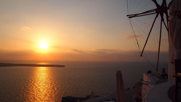 Natürlich ist dieser Ort für seinen Sonnenuntergang berühmt, laut zahlreichen Reiseführern der "schönste Sonnenuntergang der Welt" auf Platz 1! Daher ist der Andrang enorm. Mein Tipp für euch. Nehmt euch ein Fläschchen Wein oder ein Bier mit und sichert euch einen Platz bei der alten Festung. Am Besten oben auf der Mauer, hier könnt ihr schön sitzen und habt keine aufdringlichen Fotografen im Nacken. Dafür solltet ihr aber mindestens 1 Stunde vor dem Sonnenuntergang vor Ort sein - daher auch das kleine Fläschchen Wein ;-). Klingt lange die Wartezeit, ist sie aber nicht. Meistens ist wie bei uns z.B. ein singender Gitarrist vor Ort der sogar richtig gut ist. Auch den Menschstrom von seinem Platz zu beobachten mach mega Spaß! Natürlich könnt ihr auch direkt am Meer sitzen, aber mal ehrlich - wenn ihr schon tolle Sonnenuntergangbilder macht sollten auch die Windmühlen mit den typischen weißen Häusern mit drauf sein. Denn sonst könntet ihr das Bild auch von irgendeinem Kreuzfahrtschiff machen …