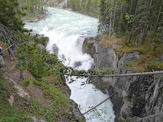 Die "Sunwapta Falls" liegen etwa 55 Kilometer südlich von Jasper im Jasper Nationalpark. Der Name stammt aus der Indianersprache und bedeutet "turbulentes Wasser". Die etwa neun Meter breiten Katarakte im Sunwatma River, der vom Athabasca Gletscher gespeist wird, fallen in zwei Stufen um insgesamt 27 (18 und 9) Meter. Die Umgebung der Wasserfälle ist gut durch Wanderwege unterschiedlicher Länge erschlossen.