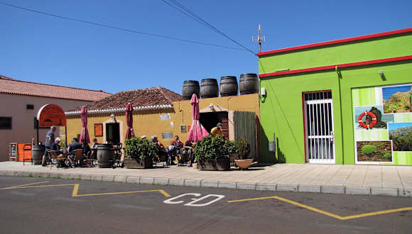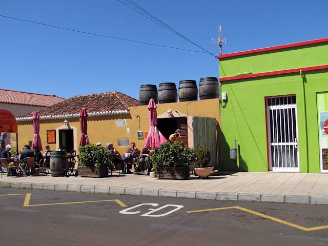 Gleich am Ortsanfang leuchtet einem das grellbunte Restaurant an der Straße entgegen. Es ist beliebt bei Einheimischen und Touristen. Die Tische auf der Terrasse vor dem Lokal waren alle belegt. Wir haben in der Taberna Santi zum ersten Mal Ziegenfleisch probiert - köstlich. Die junge Kellnerin war unglaublich flink und freundlich. Das Lokal ist unserer Meinung nach einen Abstecher wert, die Gegend um Garafia mit der herrlichen Vegetation sowieso.