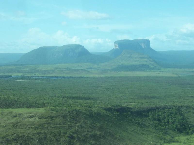 Die Tafelberge, in der Landessprache tepuyes genannt, sind Überreste eines riesigen Granitsockels, der sich im geologischen Zeitalter des Präkambriums bildete und von Sandsteinschichten umgeben ist. Durch Erdbewegungen entstanden Rissen im Sandstein. Im Laufe von Jahrmillionen wurde durch Wind, Wetter und Erosionen der Sockel weitesgehend abgetragen, so dass Täler entstanden. Die Reste des Granitsockels sind die Tepuyes, die sich wie Inselberge mehr als 1.000 Meter hoch über den tropischen Regenwald erstrecken. Der Unterschied zu einem herkömmlichen Berg, ist, dass die Tafelberge keinen Gipfel im klassischen Sinne haben, sondern mit einem Plateau abschließen. Etwa 115 dieser Tafelberge befinden sich im Südosten des Landes an der Grenze zu Brasilien und Guayana. Dieser Granitsockel, auch Guayana-Schild genannt, grenzt im Süden an das Amazonasbecken, im Westen sowie im Norden an den Orinoco und im Osten an den Atlantik. Er erstreckt sich über drei Länder in Südamerika: Venezuela, Brasilien und Guayana. Dank dieses Guayana-Schildes konnte der Orinoco sich keinen direkten Zulauf zum Atlantik bahnen, sondern musste westwärts eine enorme Schleife bilden, so dass er teilweise auch durch die Llanos fließt. Das jeweilige Plateau der einzelnen tepuyes ist seit Jahrmillionen vom Regenwald isoliert und weist völlig unterschiedliche klimatische Bedingungen auf. Während es im Regenwald heiß und schwül ist, ist das Klima auf dem Plateau gemäßigt und kühl und wird oft von Gewittern heimgesucht. Einige tepuyes sind dank dichter Wolkendecken so gut wie gar nicht sichtbar. Die Flora und Fauna des Regenwaldes kann die steilen Felswände der tepuyes nicht überwinden, so dass sie mit der Flora und Fauna der tepuyes nie in Berührung kommt. So hat sich durch diese Isolation auf den tepuyes eine Tier- und Pflanzenwelt erhalten und / oder entwickelt, die weltweit einzigartig ist und eben nur auf den tepuyes zu finden ist. Einige Tiere und Pflanzen kommen oft auch nur auf einem einzigen tepui vor. Der höchste tepui ist der Roraimatepui mit einer Gesamthöhe von über 2.900 Metern. Dieser befindet sich im Dreiländereck Venezuela, Guayana und Brasilien, ein Grenzstein markiert die entsprechende Stelle. Der Roraimatepui kann besteigen werden, entsprechende Touren werden von zahlreichen Reiseunternehmen angeboten. Der Aufstieg beginnt in San Francisco de Yuruaní und dauert zwei Tage. Es ist gesetzlich vorgeschrieben, dass für den Aufstieg ein Permónindianer als Führer eingesetzt wird. Vor dem Aufstieg wird die komplette Ausrüstung inspiziert und registriert, um keine Umweltprobleme zu verursachen. Wer den Aufstieg wagen will, muss über eine weit überdurchschnittliche Kondition verfügen. Der Auyantepui ist mit 700 km² der flächenmäßig größte tepui. Auch ihn kann man mit Hilfe von einheimischen Führern besteigen. Von seinem Plateau aus stürzt sich der längste Wasserfall der Welt, der Salto Angel, 979 Meter in die Tiefe. Von Canaima aus starten Touren mit Booten bis zur Isla Ratón am Fluss Río Churún. Von dort aus steigt man auf die 1.000 Meter hohe Aussichtsplattform am Fuße des Wasserfalls. Die tepuyes sind auch aus der Luft zu sehen. Vom Flugplatz in Canaima finden Rundflüge zum Auyantepui statt. Dort angekommen kann man den Salto Angel in seiner vollen Länge sehen, sofern der Auyantepui sich nicht hinter einer dicken Wolkendecke verhüllt. Dieses ist vor allem in den frühen Morgenstunden der Fall. Es finden unregelmäßig Linienflüge mit einer Cessna von Santa Elena aus nach Ciudad Bolívar statt. Dabei gibt es eine Zwischenlandung in Canaima, so dass der Auyantepui zum Teil umrundet wird. Auch von Santa Elena aus werden Rundflüge über den tepuyes angeboten, sei es per Kleinflugzeug, sei es per Hubschrauber. Dabei donnert der Hubschrauber so abenteuerlich durch die Schluchten, dass diese Flüge eher etwas für Hartgesottene sind.