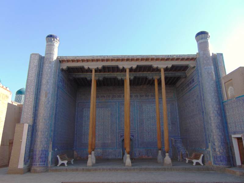Der Tash Khauli Palast im westusbekischen Chiwa (auch Khiva, Xiva) befindet sich in der historischen Altstadt, der Ichan Qala, dieser faszinierenden alten Handelsstadt. Erbaut wurde er erst im 19. Jahrhundert, zwischen 1830 und 1838, und sollte - nach den Wünschen des damaligen Khans - eigentlich nach bereits zwei Jahren, also 1832, fertiggestellt werden. Die verspätete Vollendung des Baus zahlten die Baumeister mit ihrem Leben. Sie wurden dafür enthauptet. Der Palast war die Residenz des Khans und ist von außen eher unscheinbar, von innen aber unglaublich schön. So gibt es noch einige guterhaltene Audienzhallen, die Haremsräumlichkeiten und Innenhöfe mit hohen, kunstvoll geschnitzten Holzsäulen und fantastisch verzierte Holzdecken sowie viel Majolika-Arbeiten. Diese Kachelwände in diversen Blau-Tönen und -mustern sind wunderschön anzuschauen! Der Eintritt kostet, aber in Chiwa gibt es die Möglichkeit entweder für einen Tag bzw. für 2 Tage ein Besucherticket zu kaufen. Per QR Code bekommt man dann in die meisten Sehenswürdigkeiten freien Eintritt. Einige kosten dann noch einmal extra. Der Palast aber ist mit inkludiert. Ein absolutes Muss wenn man in Chiwa ist!