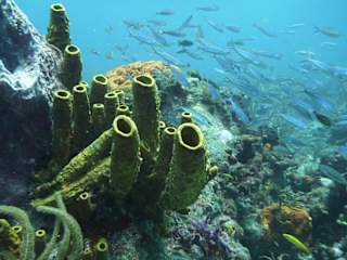 Noch ziemlich intakte Korallen, aber wie leider fast überall an den karibischen Inseln nur wenig Fische.