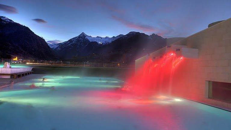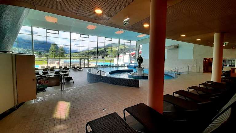 Sehr schönes Thermalbad mit Blick auf das Kitzsteinhorn. Hier fühlen sich auch Babys und Kinder wohl. Große Anzahl an Liegeflächen und Ruhezonen.